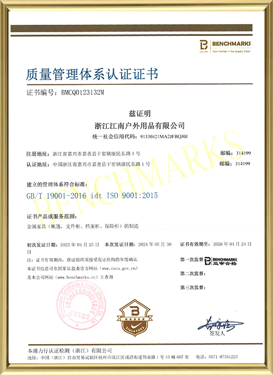 江南户外实行严格的质量控制体系,确保所有产品始终符合高标准,同时将缺陷率降低。我们的生产流程已通过ISO 9001质量管理体系和ISO 14001环境管理体系认证。